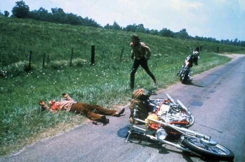 Magnífica opera prima de Dennis Hooper. Una legendaria road-movie que fue todo un éxito en su momento. No es de extrañar que conectara con la mentalidad hippie de la época y fuera un rotundo éxito: moteros de pelo largo hasta las cejas de drogas y buscando su destino...vaya si lo encontraron vaya. Actuaciones buenas de Fonda y Hooper, una banda sonora cojonuda y fotografía de Lazslo Kovacs. Coincido con eye del cul en las famosas escenas del carnaval y el cementerio, con todos los actores puestísimos. Una locura. A destacar también la escena del bar mencionada y el brutal final de la película. Jack Nicholson fantástico por cierto, creo que estuvo nominado al oscar como secundario y todo.