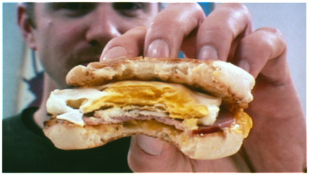 Pero bueno, eso es lo de menos, el verdadero problema es el tono demagógico de toda la película, no solo por la propia idea de partida (si tú te tiras un mes desayunando, comiendo y cenando los mejores filetes del mundo también vas a acabar a vomitos) sino por cómo la desarrolla. Sin meterme en los datos que muestra y los que deja de mostrar, diré solo que no me parece una técnica documentalista muy buena el ponerse delante de la cámara a decir cosas como "huy, qué malito estoy", "qué raro me hace sentir esta comida", "cuánto me duele".